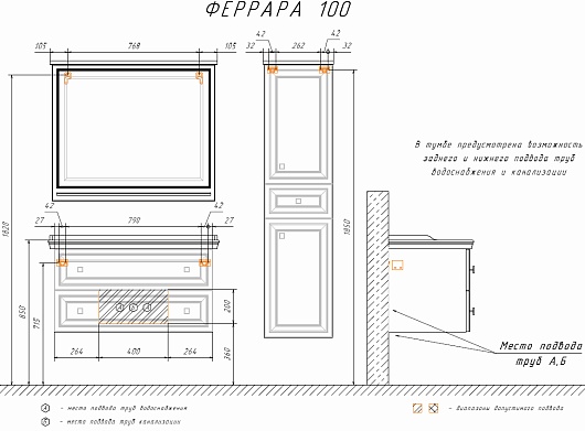 - 2 распашные дверцы, 1 выдвижной ящик.