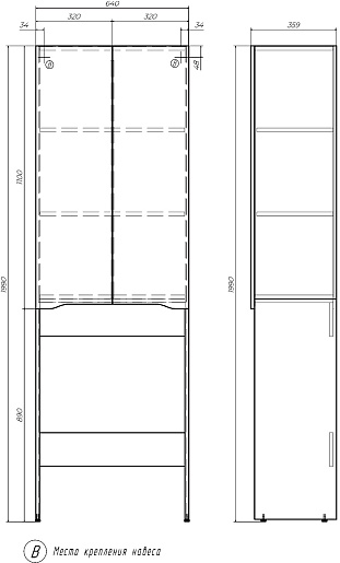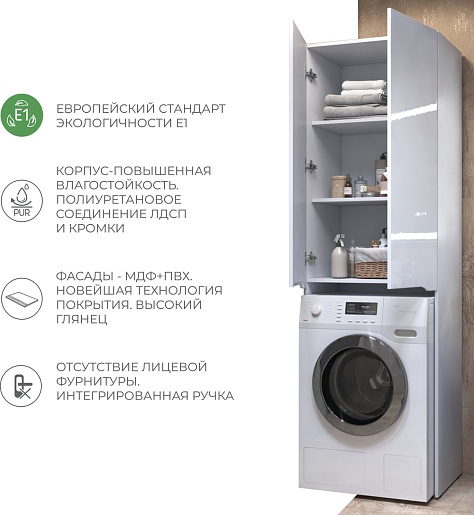 - Система хранения: 2 дверцы, 1 ниша для стиральной машины.