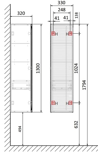 - Крепится к стене на навесы.