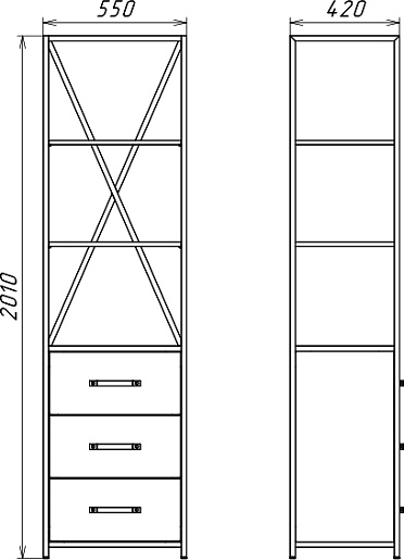 - 2 выдвижных ящика, 3 открытые полки.