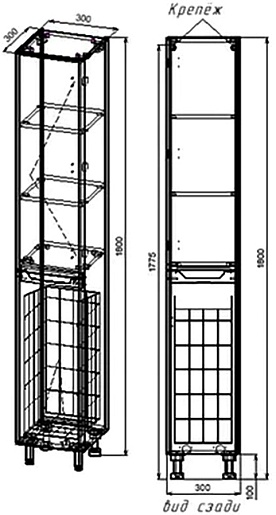 - 1 дверца, 1 бельевая корзина.