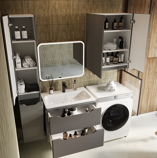 Style Line Шкаф пенал Марелла 30 L Люкс Plus антискрейтч с б/к серый матовый