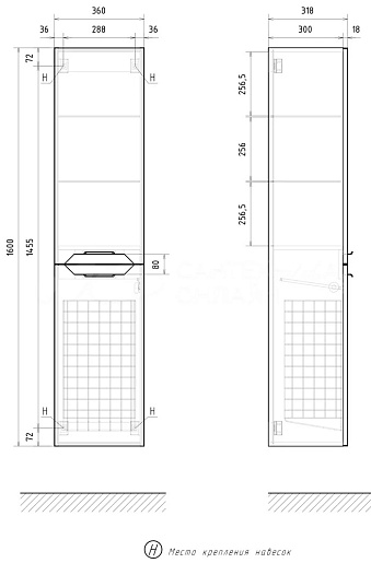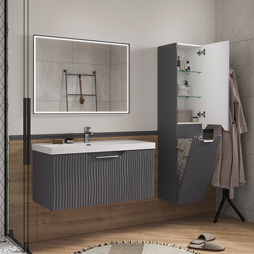 Equil Шкаф пенал Mirage 36 R с корзиной подвесной графит софт