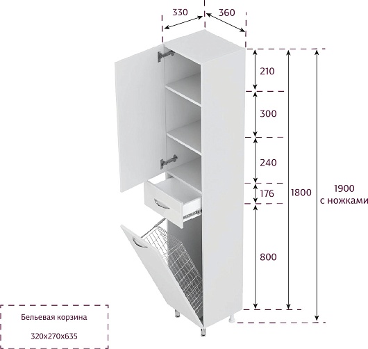 - С откидной бельевой корзиной.