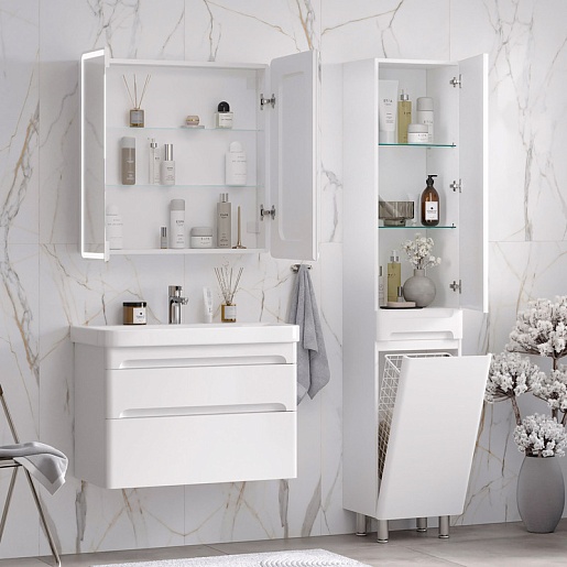 - Дверки пенала открываются при помощи интегрированных ручек.
