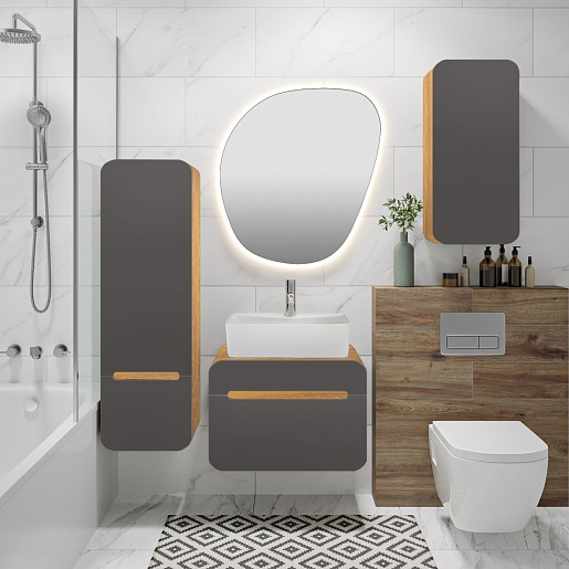 Runo Шкаф пенал Ницца 35 R подвесной графит/дуб натуральный