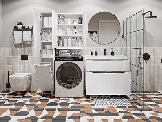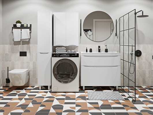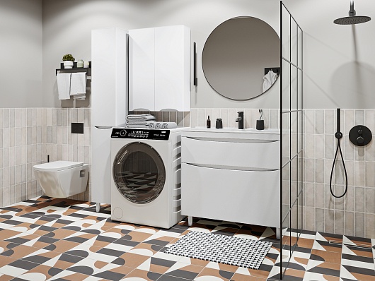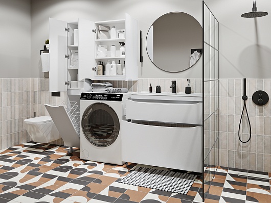 - 1 распашная дверка в верхней части корпуса, снизу - откидная бельевая корзина.