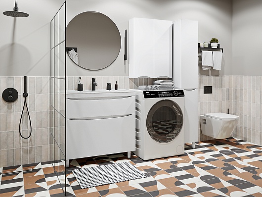 - 1 распашная дверка в верхней части корпуса, снизу - откидная бельевая корзина.