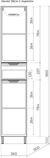 - 2 дверцы, 1 выдвижной ящик.