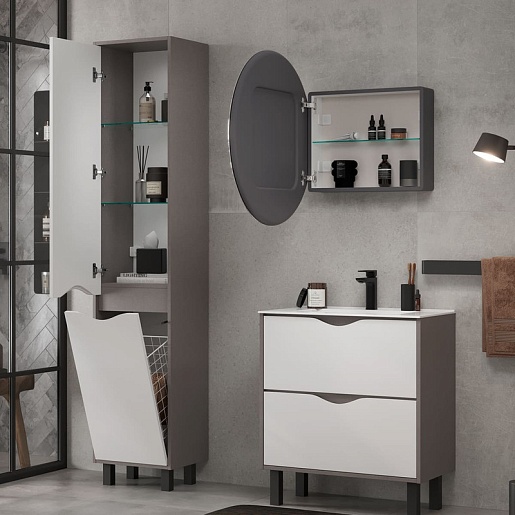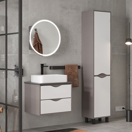 - Фасады пенала изготовлены из МДФ и облицованы матовой пленкой ПВХ с эффектом «Soft Touch».
