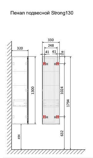 Jorno Шкаф пенал Strong 33/130 антрацит Str.04.130/P/A