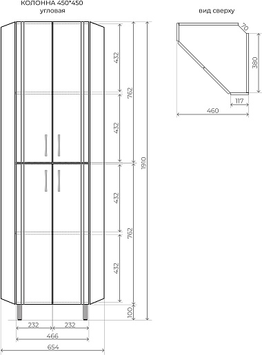 Шкаф пенал Style Line Веер 45 угловой - арт. ЛС-00002327.
