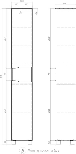 - Система хранения: 2 распашные дверки, 1 открытая ниша.
