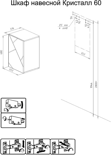 Бриклаер Шкаф подвесной Кристалл 35x60 софт графит/ясень анкор темный