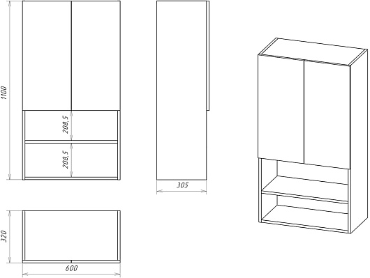 - 2 дверцы, 2 открытые полки.