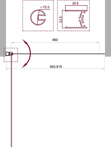 BelBagno Шторка на ванну 90/150 UNO-V-1-90/150-C-Cr
