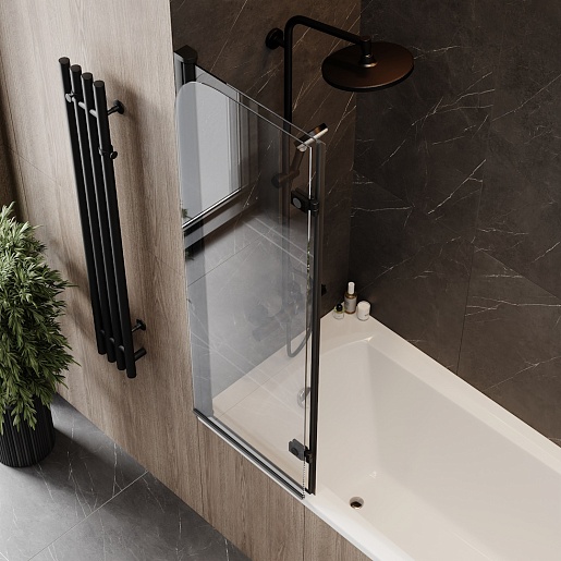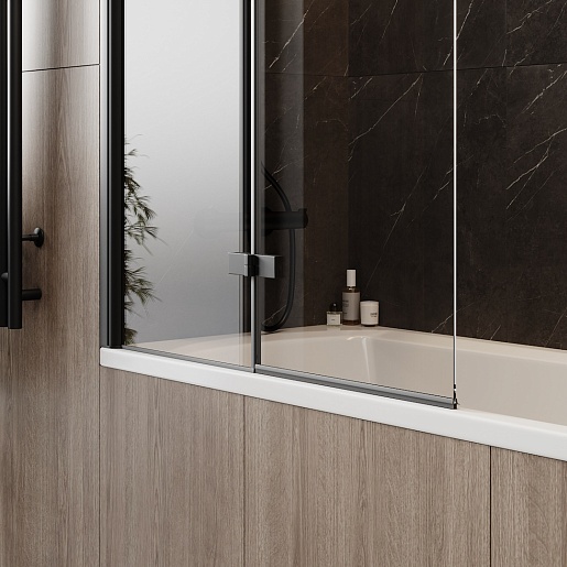 Распашная шторка на ванну Timo 100x140 профиль черный матовый стекло прозрачное - арт. T00280.