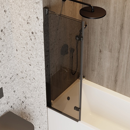 Распашная шторка на ванну Timo 100x140 профиль черный матовый стекло тонированное - арт. T00281.