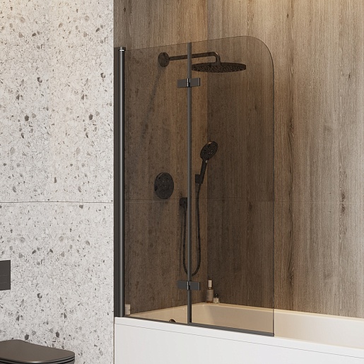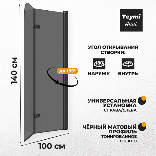 Teymi Шторка на ванну Anni 100x140 профиль черный матовый стекло тонированное