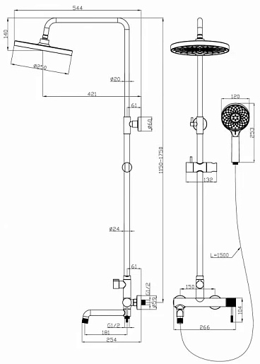- Верхний душ и душевая лейка из ABS.