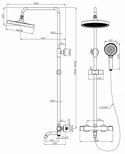 - Душевой шланг: стальная оплётка с 2-м замком.