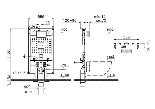 - встроенный бачок с жесткой рамой
