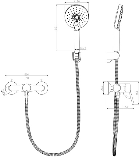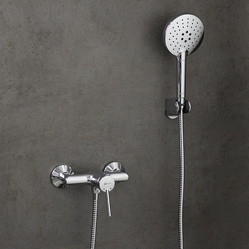 Комплектация: смеситель, душевая лейка, душевой шланг, держатель лейки, комплект эксцентриков с отражателями.