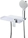 - Корпус смесителя выполнен в виде полочки для ванных принадлежностей.