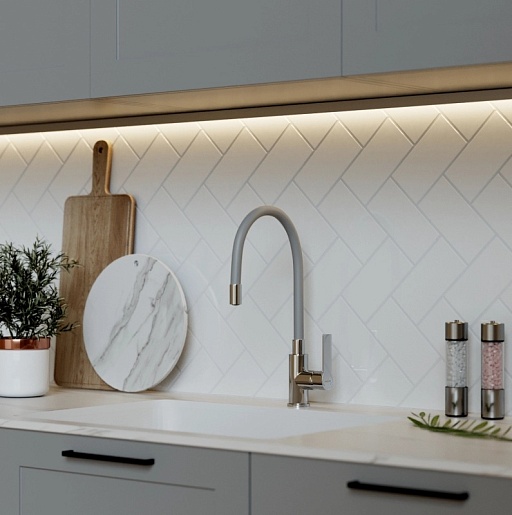 - Гибкий излив более маневренный, чем обычный, и позволяет настроить высоту и угол излива под любые нужды.