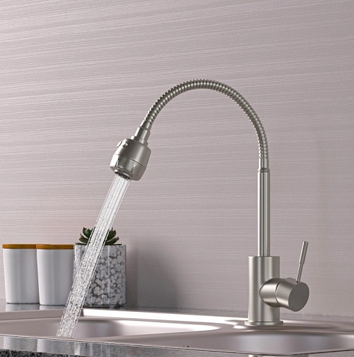 - Гибкий излив более маневренный, чем обычный, и позволяет настроить высоту и угол излива под любые нужды.