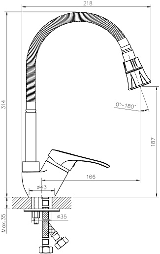 Смеситель для кухни Rossinka B35-26 с гибким изливом.