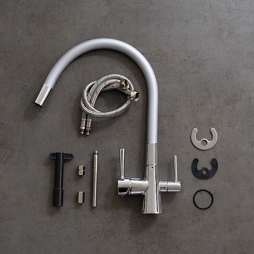 Комплектация: смеситель, переходник для фильтра, комплект подводки.