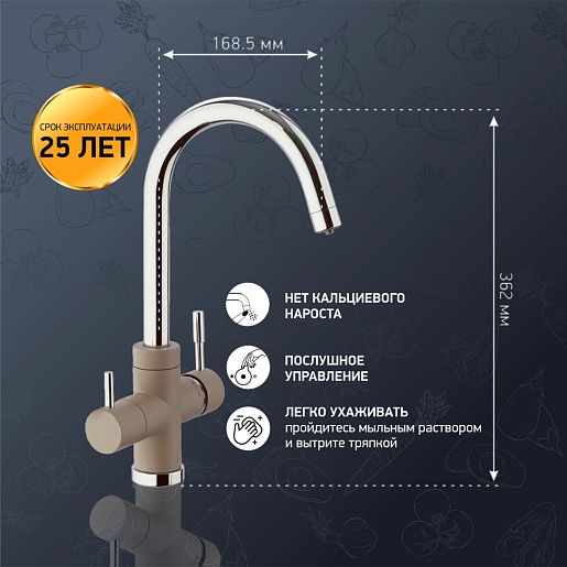 Paini Смеситель для кухни Cox 7872643CR3V11L2KM с подводом для фильтра, хром/бежевый