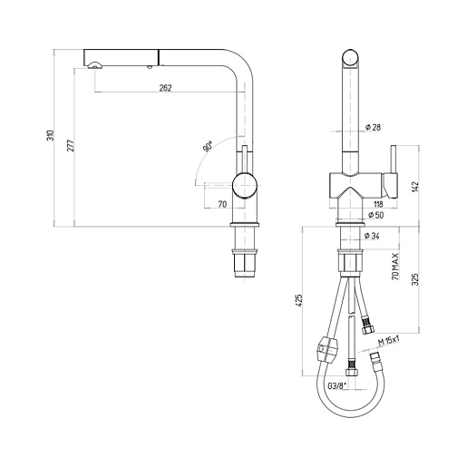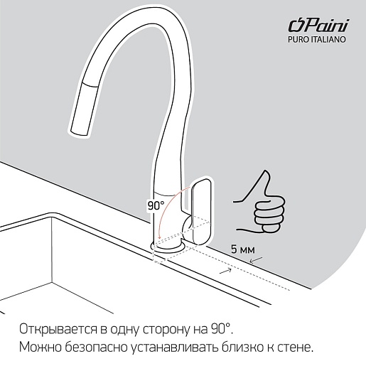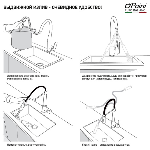 Paini Смеситель для кухни Cox HD44566CR1KM с выдвижным изливом, чёрный