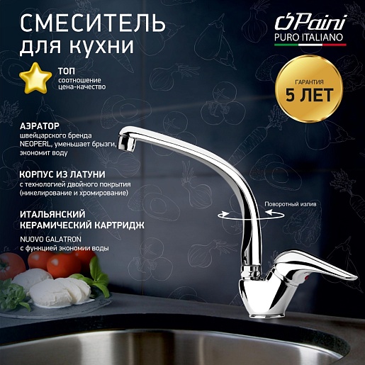 Paini Смеситель для кухни Dilos 76CR571KM хром