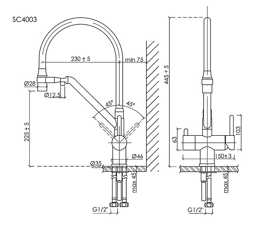 - Гибкий излив более маневренный, чем обычный, и позволяет настроить высоту и угол излива под любые нужды.