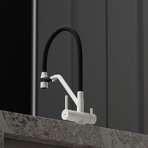 - Гибкий излив более маневренный, чем обычный, и позволяет настроить высоту и угол излива под любые нужды.
