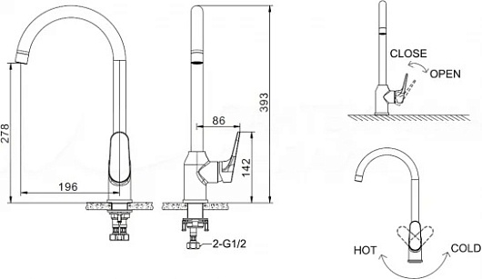 - Длина излива: 19.6 см.