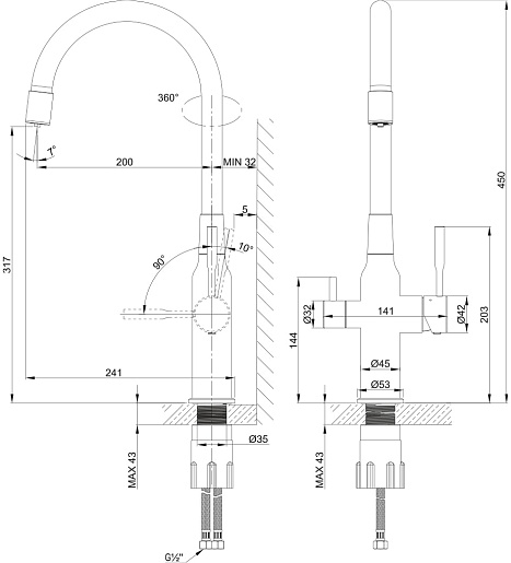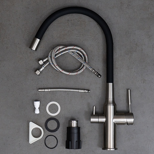 Комплектация: смеситель, переходник для фильтра, комплект подводки.