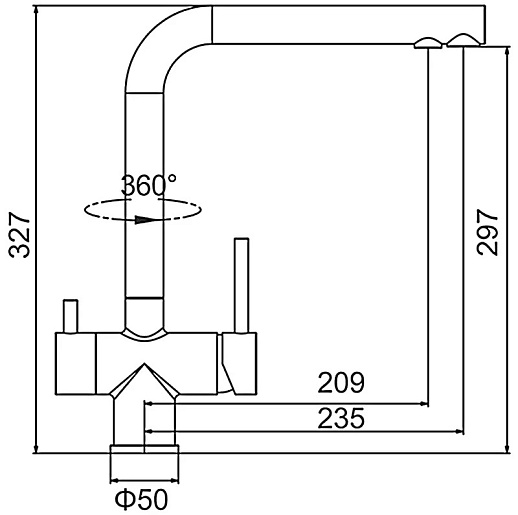 - Длина излива: 23.5 см.