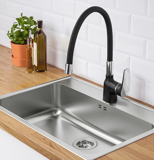 - Гибкий излив более маневренный, чем обычный, и позволяет настроить высоту и угол излива под любые нужды.