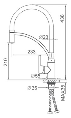 - Длина излива: 23.3 см.