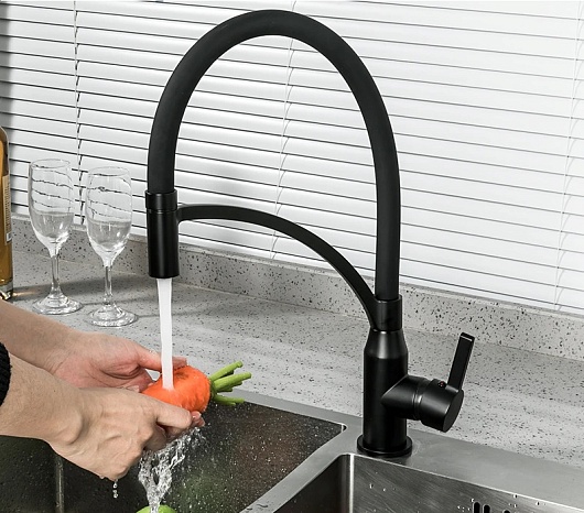 - Гибкий излив более маневренный, чем обычный, и позволяет настроить высоту и угол излива под любые нужды.