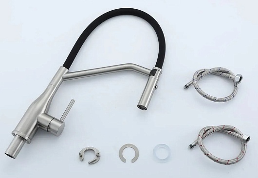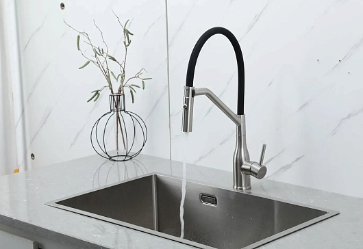 - Гибкий излив более маневренный, чем обычный, и позволяет настроить высоту и угол излива под любые нужды.