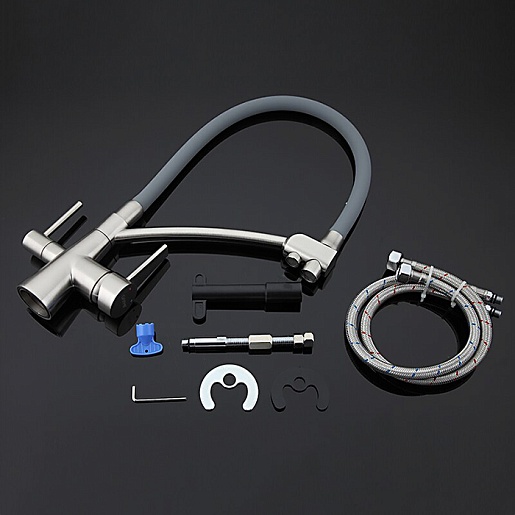 - Гибкий излив более маневренный, чем обычный, и позволяет настроить высоту и угол излива под любые нужды.