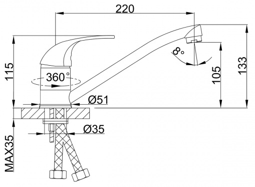 - Длина излива: 22 см.