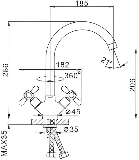 - Длина излива: 18.5 см.