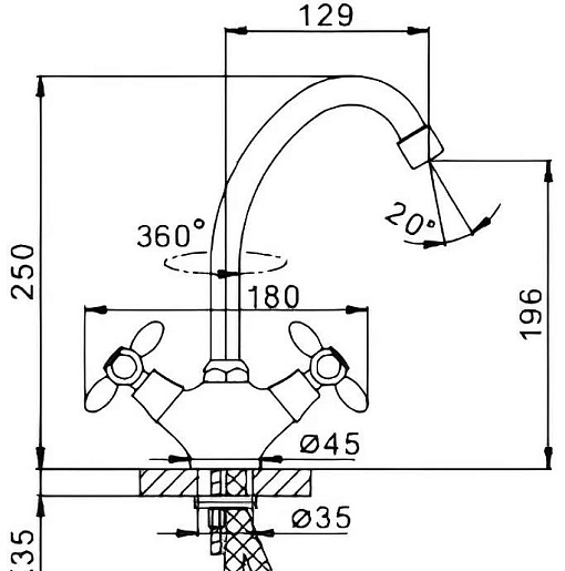 - Длина излива: 12.9 см.