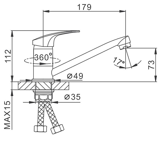 - Длина излива: 17.9 см.