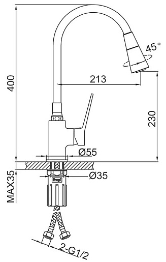 - Гибкий излив более маневренный, чем обычный, и позволяет настроить высоту и угол излива под любые нужды.